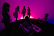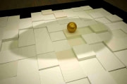 毎年出展している行動展に、今年はサナダサダヲ氏のコラボレーションで出品しました。サナダ氏の卵の造形と私の光との組み合わせです。公募展としては広い面積を使い、ちょっと不思議な作品になりました。