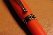 ボールペンを何本か持っています。これはその中の1本です。イタリアのアウロラのイプシロン・サテンのオレンジです。ちょっとクラシカルな形にこのオレンジ色がお気に入りです。ぱっと見、色は派手でも形はおとなしい。モダンなラミーもカッコいいのですが。いつも手元においておきたいのは、ハデでジミなのアウロラのほうです。あまり見かけないのも、レアでいいです。