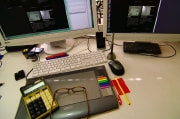 中古ですが、24型ディスプレイを購入しました。いままではEIZOブランドのS2411を一台で、MacとWindowsを切り替えて使ってました。仕事でよく行く池袋の山田デンキに、中古フロアが有るのを見つけ、そこで中古のS2410を発見。送料込みで¥18,000!。見た目は同じディスプレイを2台ならることができました。 MacとWindows同時に見ることができ、ほんの少しだけ作業効率が上がりました。