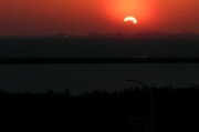 事務所で仕事をするときは、机の上のペンダントしかつけていません。夕方暗くなる時間になると、明るかった部屋は次第にくらくなり、気づくと机のがぼんやりと照らされているだけです。ネガがポジになるこの時間、薄暮時間はとても綺麗な自然のショーです。写真は稻毛海岸から見える、涼む太陽です。